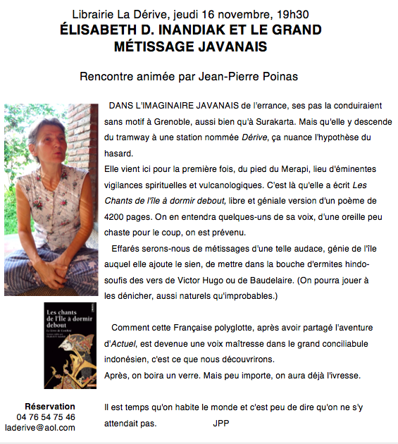 Imaginaire javanais, le 16 novembre 19h30 à La Dérive…