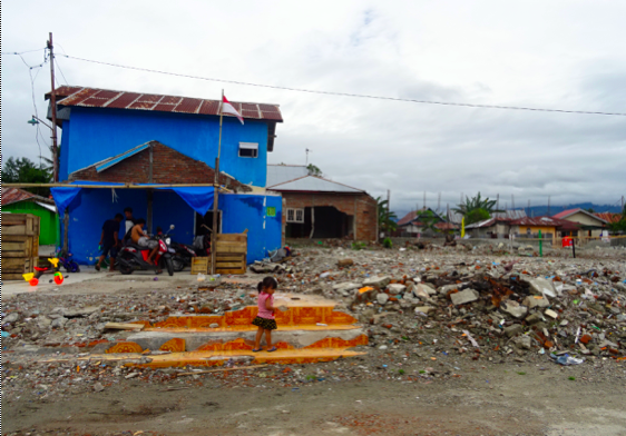 Bakri, Nasir et Murni vivent depuis quatre mois avec les quelques vêtements qu’on leur donnés et, pour seul paysage quotidien, le chaos des pierres, les ruines des maisons voisines, escaliers carrelés débouchant sur rien que le ciel, la silhouette verte de la mosquée, reconstruite avec une donation saoudienne et, bien sûr le socle de béton neuf du nouveau marché.