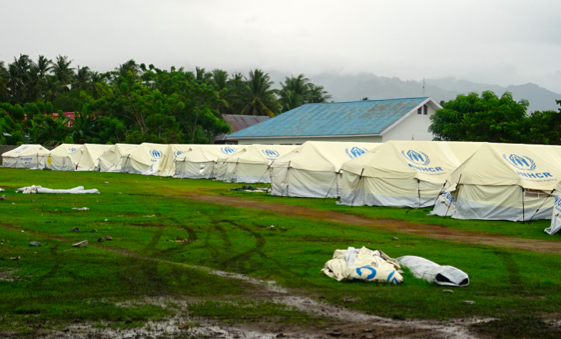 Dans cinq jours, il cèderont la place aux étals. Ceux-ci sont encore de l’autre côté de la route, sous des auvents de fortune. Jusqu’à côté des tentes du HCR, de quoi héberger deux ou trois cents personnes.