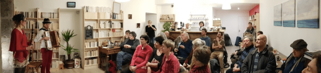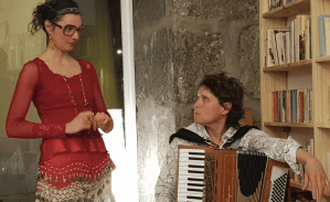 Taïga! Un saxo et un accordéon mêlant leurs souffles dans un même élan. Musique envoutante, nostalgique, éclatante de vie. Expiration sans limite, comme le grand vent soufflant sur la Taïga… Avec Geneviève Drosson au saxo soprano et Nathalie Kuhn à l’accordéon.
