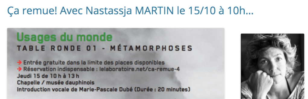 Info partenaires / Le 3 octobre à 17h30 à la Librairie Arthaud…