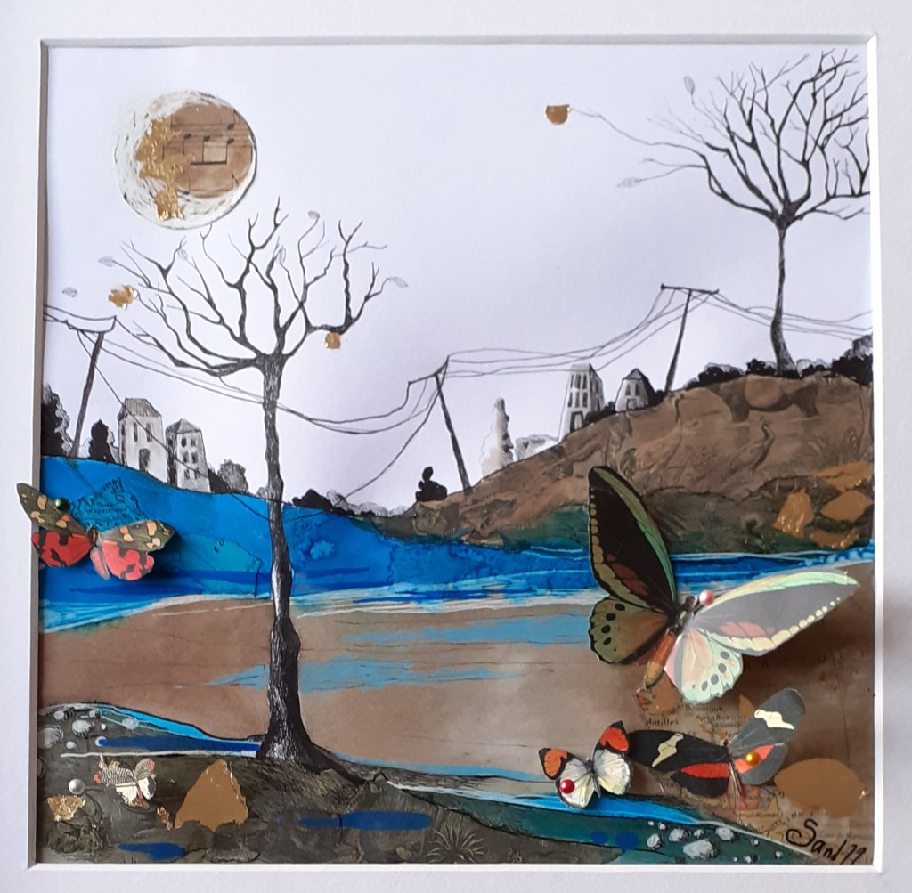 Venez découvrir l’exposition de Sandrine Micoud-Terraud, art-thérapeute, plasticienne qui utilise dessin, collage & peinture, linogravure, qui nous présente des petits formats qui mettent en scène son interrogation sur la place de l’humain dans son environnement.