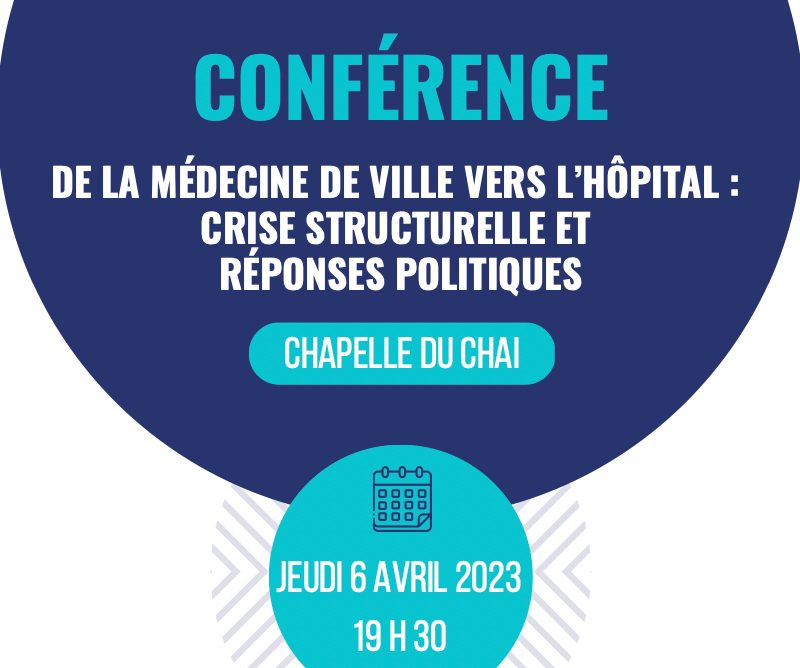 - Toujours le 6 avril à 19h30 : Conférence DE LA MÉDECINE DE VILLE VERS L’HÔPITAL: CRISE STRUCTURELLE ET RÉPONSES POLITIQUES